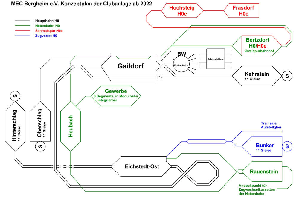 Weil sich einige Clubmitglieder auch mit Schmalspurbahnen befassen wurde der Bhf Bertzdorf zum Zweispurbahnhof (H0 - H0e) umgeplant. Bevor die