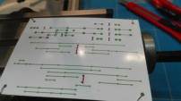 Die gedruckte Rückseite (grün/rot) wird nur zur Lokalisierung der zu unterbrechenden Kupferbahnen
