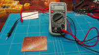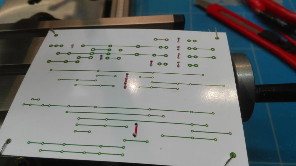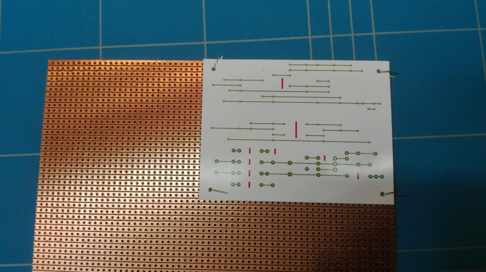 Löcher für die Bauteile (Raster 2,54 mm) nicht mit denen der Platine fluchten. Normales Papier reicht