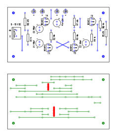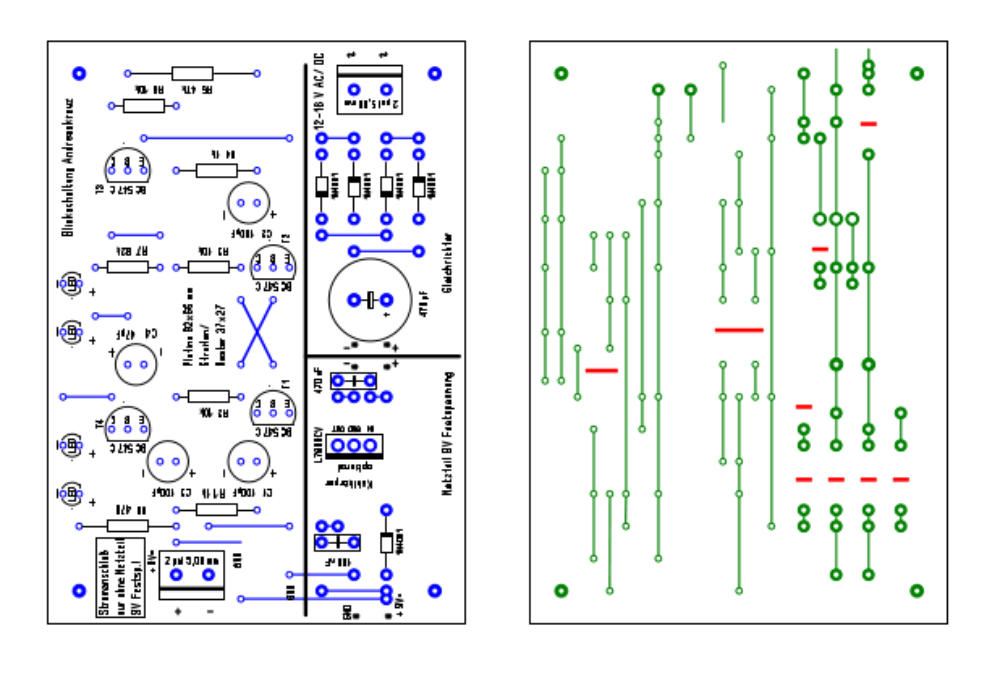 das Layout mit Vorder/Bestückungsseite und Rück/Lötseite für eine gewöhnliche