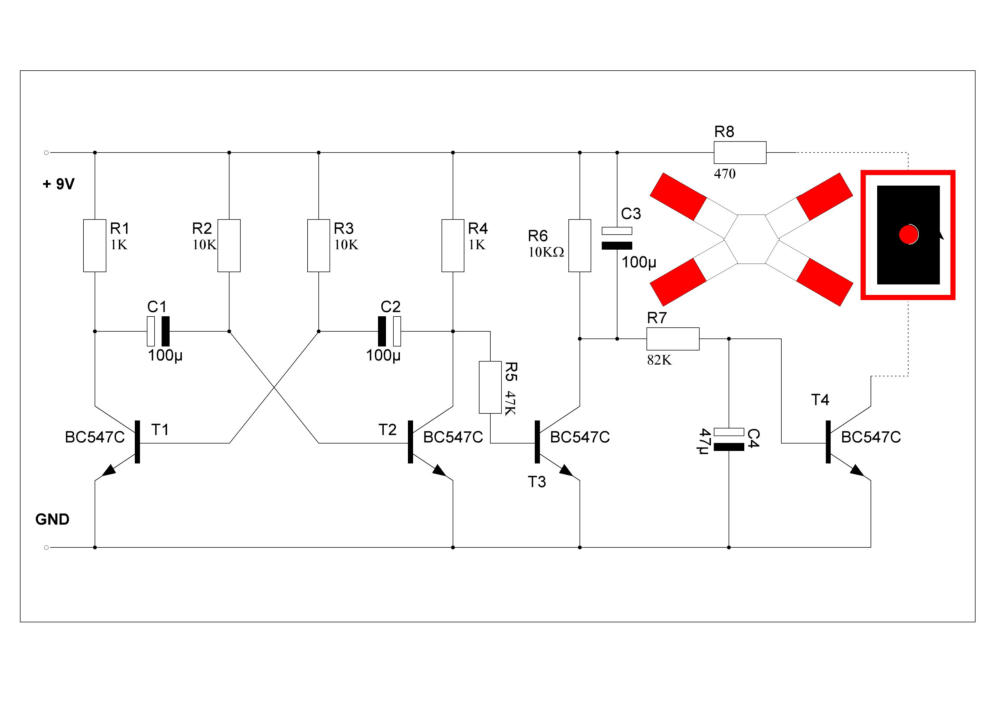 Warnlichtern. Mit wenigen elektronischen Bauteilen läßt sich eine solche Schaltung aufbauen.